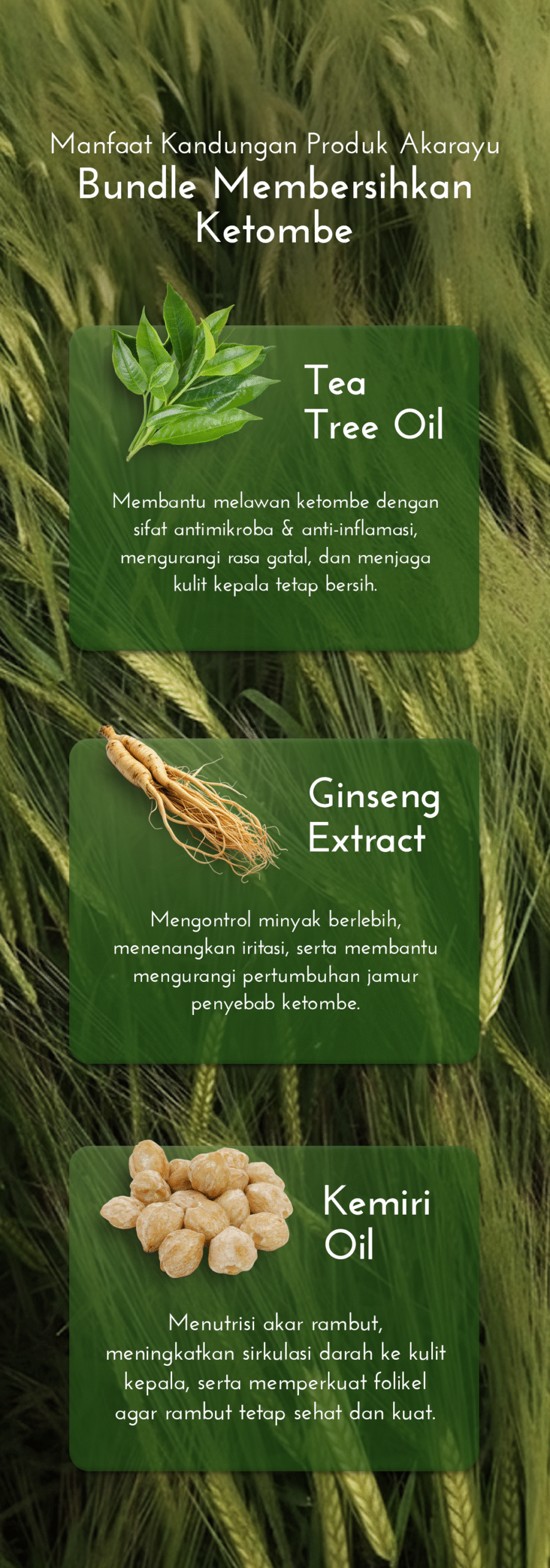 Dari 100% natural oil (Kemiri, Ginseng, Argan, Coconut) yang bantu jaga kelembapan, kuatkan akar, dan bikin rambut lebih sehat.